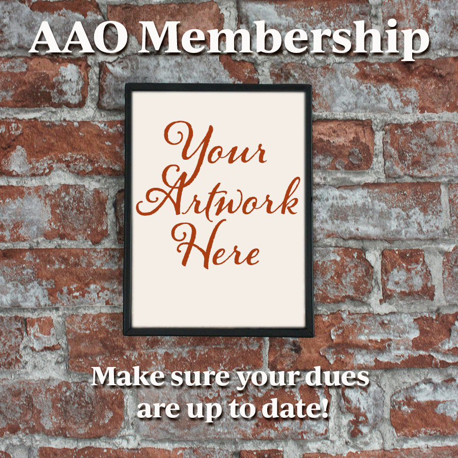 Remember, you must be a current member of the AAO to participate in the Members’ Show, the Holiday Sale, and other members-only events. Members save on class fees, too!
